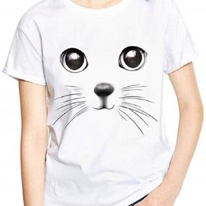 T-Shirt à Manches Courtes Femme Mignon Chat